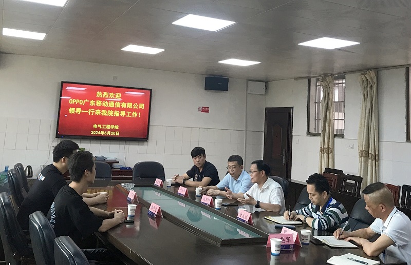 為打開(kāi)校企合作、共同發(fā)展的新局面,2024年5月20日下午,OPPO廣東移動(dòng)通信有限公司王宇鵬、李阿龍兩位經(jīng)理來(lái)到衡陽(yáng)技師學(xué)院電氣工程學(xué)院參觀并洽談校企合作,衡陽(yáng)技師學(xué)院黨委委員、副院長(zhǎng)成朝陽(yáng)及招生就業(yè)指導(dǎo)處、電氣工程學(xué)院相關(guān)負(fù)責(zé)人參加洽談會(huì)。