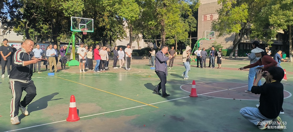 托球折返跑:籃球場上,教職工們手持乒乓球拍,小心翼翼地托著球,快速而穩健地在折返點間穿梭,展現了速度與平衡的完美結合。