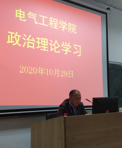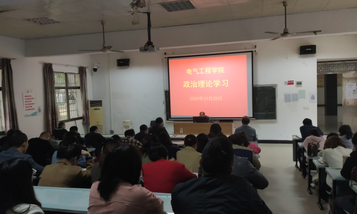 2020年10月29日中午2點在電氣學院辦公樓一樓多媒體教室,老師們排隊簽到,參加政治思想學習,充分展示校園文明。