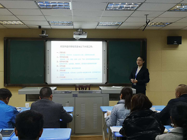 培訓會上,劉大瓊老師、蔣鐵球老師分別同大家分享了“常見公文寫作規范”和“公文寫作應注意的幾個問題”。兩位老師結合自身多年文字工作經驗,從公文寫作的意義、寫作技巧、文體運用、格式排版、注意事項等多個方面,深入淺出地講解了如何進一步規范公文格式和提高公文寫作水平;此次培訓內容豐富、語言生動,既有專業性的理論知識,又有具體的典型實例分析。
