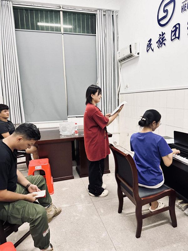 他們懷揣著對藝術的熱愛和對學院的深厚情感,主動放棄了自己的休息時間,以無私的奉獻精神和專業的藝術素養,為學生們樹立了榜樣。在排練過程中,不同民族的文化相互碰撞、融合。教師們耐心指導學員,學員們也虛心學習,共同探討如何將節目打造得更加精彩。他們的付出與奉獻,為中秋晚會增添了一抹絢麗的色彩,也為民族團結書寫了新的篇章。