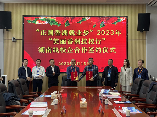 3月15日,珠海市香洲區委組織部、人社局、人力資源中心聯合開展的2023年“正圓香洲就業夢”系列活動之“美麗香洲技校行”湖南線活動,組織格力電器、納思達等7家企業來我院進行政校企合作洽談會。珠海市香洲區人民政府副區長魏恒及相關領導與企業,學院黨委副書記、院長廖與飛、衡陽市人社局黨組成員、副局長劉文文、學院副院長成朝陽出席洽談會。