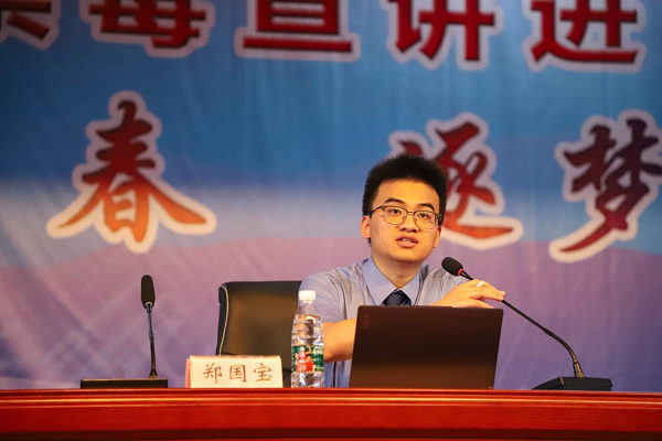 鄭國寶以“青春無毒 逐夢未來”為題,從“識毒品、知毒危、防毒誘”等方面向在場的同學們介紹了毒品的危害,現場講解了關于禁毒工作的方針、政策和相關法律法規。宣講中,他與同學們現場互動,通過觀看禁毒公益宣傳片、現場問答等形式從青少年學生面臨的涉毒風險,結合吸毒典型案例,為同學們講授了禁毒專業知識和防毒拒毒的方法技巧。