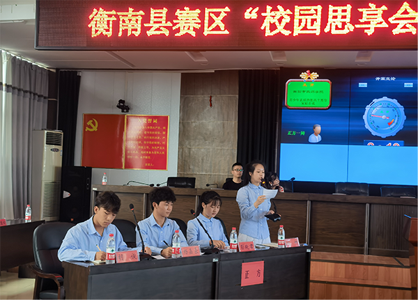 衡南縣賽區(qū)根據(jù)各中職學(xué)校報名備賽情況,最終確定衡南縣職專、衡陽技師學(xué)院和湘藍(lán)職業(yè)學(xué)校三所學(xué)校參加決賽。辯論雙方慷慨激昂、旁征博引,你來我往、唇槍舌戰(zhàn),把比賽推向了白熱化的階段。我院代表隊善于抓住突破口,或一針見血,或循循善誘,或侃侃而談,他們靈活的思維、縝密的邏輯,令在場觀戰(zhàn)的同學(xué)和評委為之折服,全場不時爆發(fā)熱烈的掌聲。