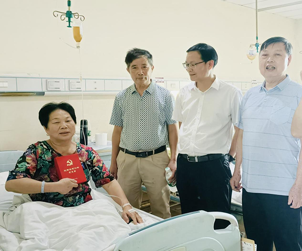 黨委副書記陳干甲(左二)慰問羅孝順同志