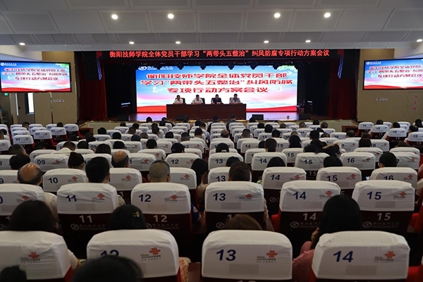 7月28日,衡陽技師學(xué)院召開全體黨員干部學(xué)習(xí)“兩帶頭五整治”糾風(fēng)防腐專項(xiàng)行動(dòng)方案會(huì)議,黨委書記肖春林出席會(huì)議并講話,會(huì)議由學(xué)院黨委副書記、院長(zhǎng)廖與飛主持,黨委委員、紀(jì)委書記王晨旭作專項(xiàng)工作安排。