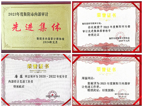 近日,湖南省內部審計師協會表彰了2020-2022年全省內部審計先進集體和先進工作者,衡陽市內部審計師協會公布了2023年度全市內部審計先進集體和先進工作者,學院審計處被評為“衡陽市內部審計先進集體”,審計處綜合科科長唐蓉同志被評為“湖南省內部審計先進工作者”,審計處處長周鑒同志被評為“衡陽市內部審計先進工作者”。