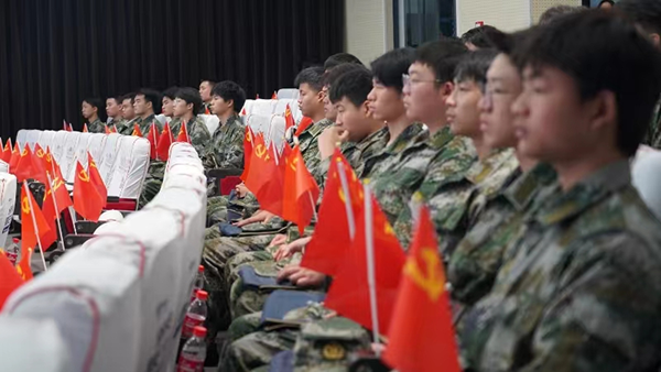 黨史館宣講員用質樸的語言、真摯的情感帶領大家回到了那個滿目瘡痍、戰火紛飛的年代,感受到了中國軍人拋頭顱、灑熱血,不怕犧牲的革命精神。在宣講員的帶領下,大家齊聲朗誦了毛澤東詩歌《七律長征》,音樂國防課在共唱《 強軍戰歌 》歌聲中結束。