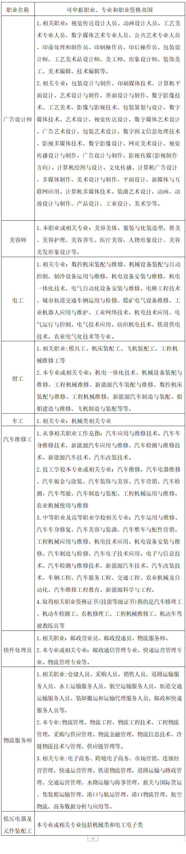(五)可申報職業、專業和職業資格范圍