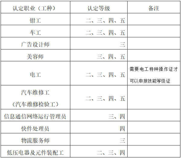 注:同一職業工種及等級申報人數滿20人方組織考試,不足20人的,將進行資源統籌、調整認定時間。