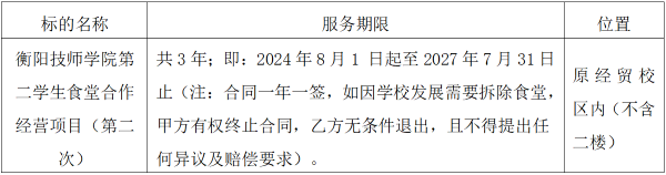 項(xiàng)目名稱:衡陽(yáng)技師學(xué)院第二學(xué)生食堂合作經(jīng)營(yíng)項(xiàng)目(第二次)