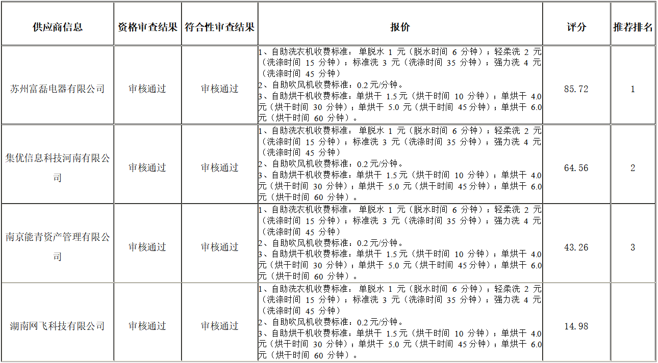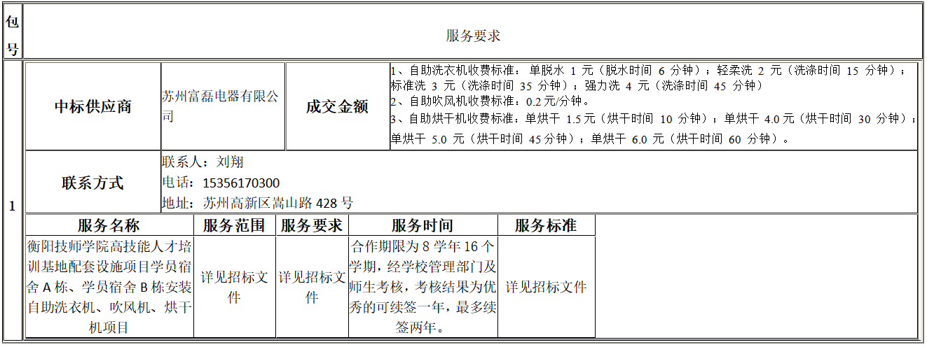 衡陽技師學(xué)院高技能人才培訓(xùn)基地配套設(shè)施項目學(xué)員宿舍A棟、學(xué)員宿舍B棟安裝自助洗衣機、吹風(fēng)機、烘干機項目公開招標(biāo)采購于2024年07月03日結(jié)束,現(xiàn)將中標(biāo)(成交)結(jié)果公告如下: