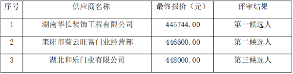 衡陽技師學院的1-4棟學生宿舍門頁更換和5-6棟學生宿舍木門更換項目競爭性談判于2024年07月05日結束,現(xiàn)將成交結果公告如下: