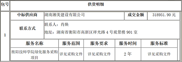 衡陽技師學院的衡陽技師學院綠化服務采購項目公開招標采購項目于2024年07月22日結束,現將中標(成交)結果公告如下: