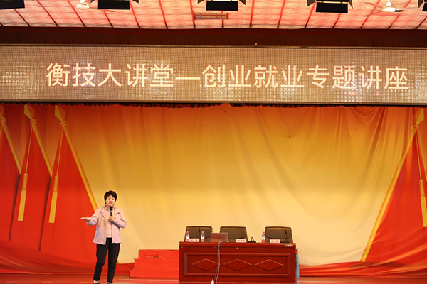 10月24日下午,2024年第6期“衡技大講堂”在學(xué)院大禮堂開講。中國開發(fā)區(qū)協(xié)會(huì)平臺(tái)經(jīng)濟(jì)專業(yè)委員會(huì)秘書長(zhǎng)、著名創(chuàng)業(yè)教育與社會(huì)實(shí)踐家趙紫晨,三創(chuàng)合一集團(tuán)創(chuàng)始人、董事長(zhǎng)謝東分別以《筑夢(mèng)啟航 擁抱未來》《心中有光,砥礪前行》為題,開展就業(yè)創(chuàng)業(yè)專題講座,學(xué)院黨委委員、副院長(zhǎng)肖芳主持。