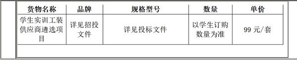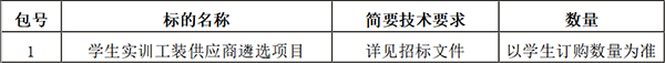 一、采購項目名稱、編號采購項目名稱:學生實訓工裝供應商遴選項目