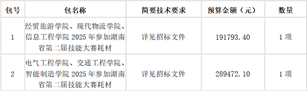 湖南省招標(biāo)有限責(zé)任公司采購代理機構(gòu)受衡陽技師學(xué)院的委托,對參加衡陽技師學(xué)院參加2025年湖南省第二屆技能大賽耗材采購項目(委托代理編號:0623-2465N1124005)進行公開招標(biāo)采購。歡迎符合資格條件的投標(biāo)人前來投標(biāo)。