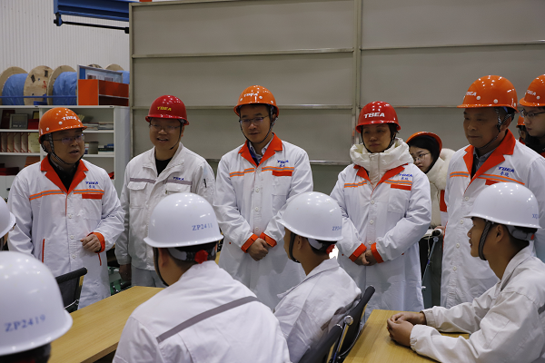 肖春林一行看望了學院在企業(yè)實習學生,送去新年祝福,詳細詢問、了解學生在公司工作和生活等情況。他鼓勵同學們,要珍惜校企合作培養(yǎng)平臺優(yōu)勢,發(fā)揚“吃得苦、霸得蠻、耐得住寂寞”的湖湘工匠精神;要強化特變電工智能化設備操作等前沿技術學習,腳踏實地工作;要發(fā)揮榜樣的力量,認真做好規(guī)劃,樹立人生目標,更好服務衡陽本地經濟社會發(fā)展。