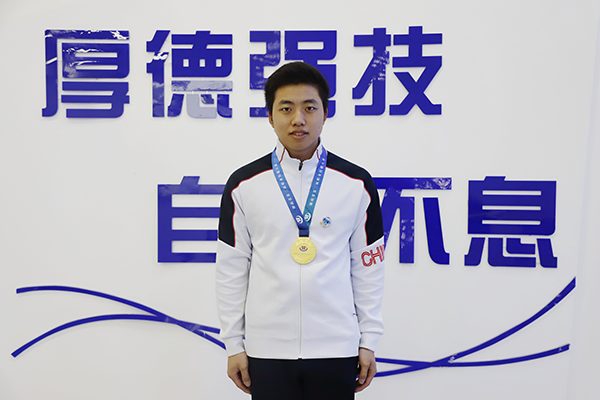 頭戴安全帽,配以護目鏡,一身利落的工作服,這是左穎俊比賽時的裝扮,也是4年來他身上最常出現(xiàn)的裝扮。“訓(xùn)練得足夠扎實,比賽也就不慌張了。”一步一步掃清長時間比賽的體能障礙、全英文編程的語言障礙、高技術(shù)要求的技能障礙……背上充實的“行囊”,左穎俊成功“奪金”。