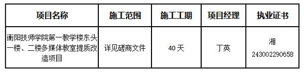 衡陽技師學(xué)院第一教學(xué)樓東頭一樓、二樓多媒體教室提質(zhì)改造項目于2025年07月11日結(jié)束,現(xiàn)將成交結(jié)果公告如下: