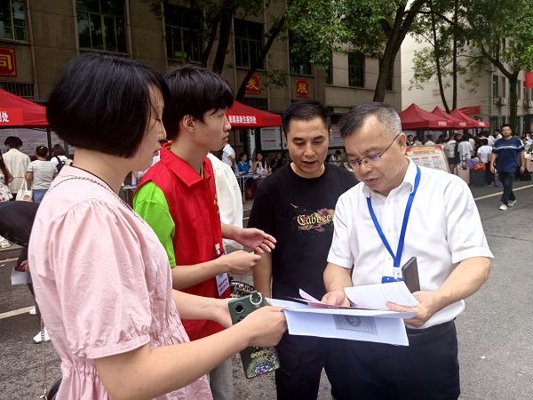 “家長,您好!資料復印好了,您拿好?!睓C關第一黨支部黨員志愿者羅振南正在為新生及家長免費復印入學報到資料。這是學院黨員教師發揮先鋒模范作用助力迎新工作的縮影。