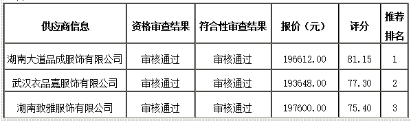 衡陽技師學(xué)院遴選2025級學(xué)生實(shí)訓(xùn)工裝供應(yīng)商公開招標(biāo)采購于2026年03月05日結(jié)束,現(xiàn)將中標(biāo)(成交)結(jié)果公告如下: