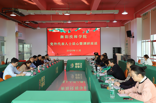 黨委副書記、院長邱家才主持調研座談會。各民主黨派代表、無黨派代表、政協委員代表、知聯會代表結合當天的參觀學習,紛紛暢談衡陽近年滄桑巨變,并圍繞學院教育教學、對接衡陽產業發展等積極獻言獻策。