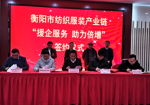 市紡織服裝產業鏈副鏈長肖立建,市紡織服裝產業鏈副鏈長、常寧市人民政府副市長段鳴,衡陽技師學院黨委委員、宣傳統戰部部長肖芳以及駐衡高校相關二級學院、衡陽部分職業中專學校負責人等參加掛牌和簽約儀式。
