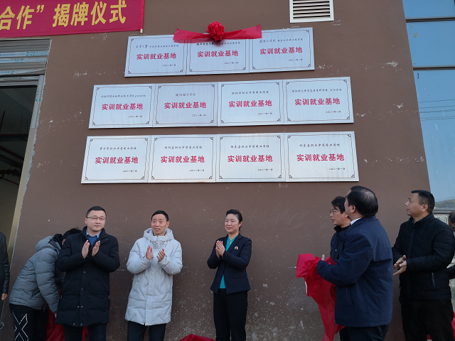 活動現場,張霞為衡陽市紡織服裝產業鏈“校企合作”實訓就業基地揭牌。院長邱家才作為院校簽約方唯一代表發言。