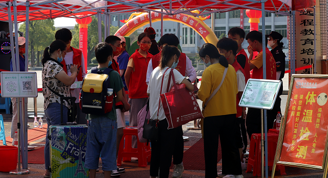 迎新現場,新生有序地在檢測通道排著隊伍,檢測體溫,出示本人的健康碼和行程碼、48小時核酸陰性證明、14天自我健康監測報告,各項指標符合要求后進入校園。學院正門“衡陽技師學院歡迎您”彩虹門、校園走道上的一條條技能文化的宣傳標語都讓前來報到的新生倍感新鮮和溫馨。