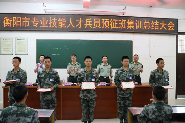 本網訊 6月27日下午,衡陽技師學院召開專業技能人才兵員預征班集訓總結大會。市征兵工作領導小組副組長、警備區副司令員羅春亮,衡陽市征兵辦公室主任、警備區動員處處長海向陽,衡南縣人武部部長歐陽石林出席會議,衡陽技師學院黨委委員、副院長陳石義主持會議。全體帶訓教官和預征班學員參加總結大會。