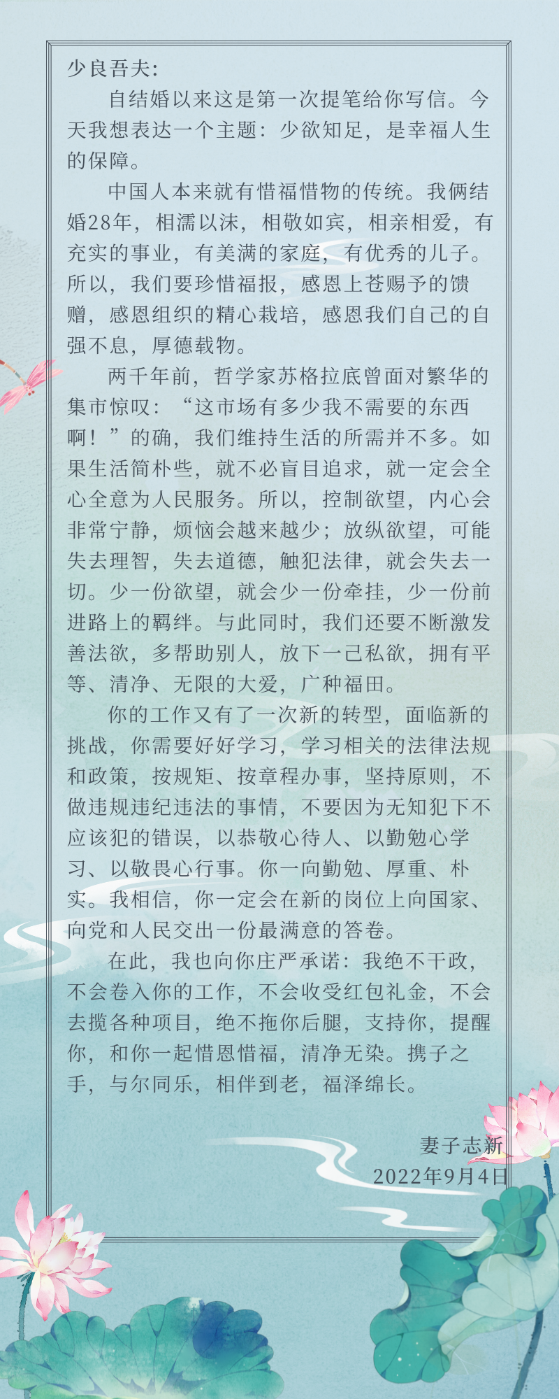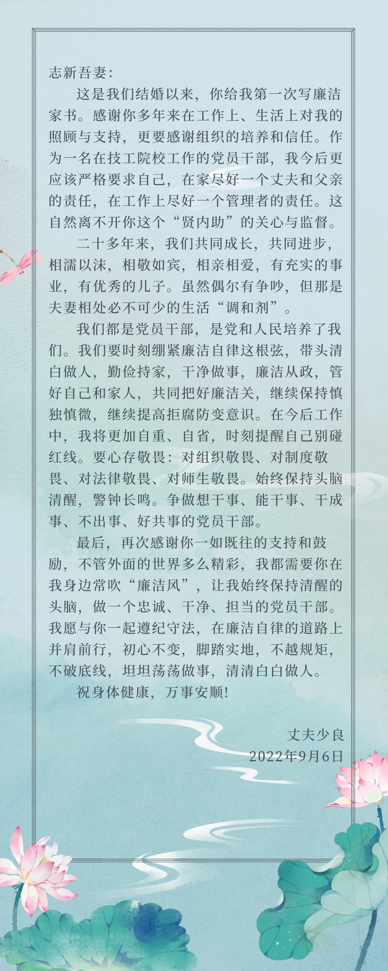 清廉學校——書記、院長評家書(二)|院長廖與飛同志評家書:清心寡欲保平安