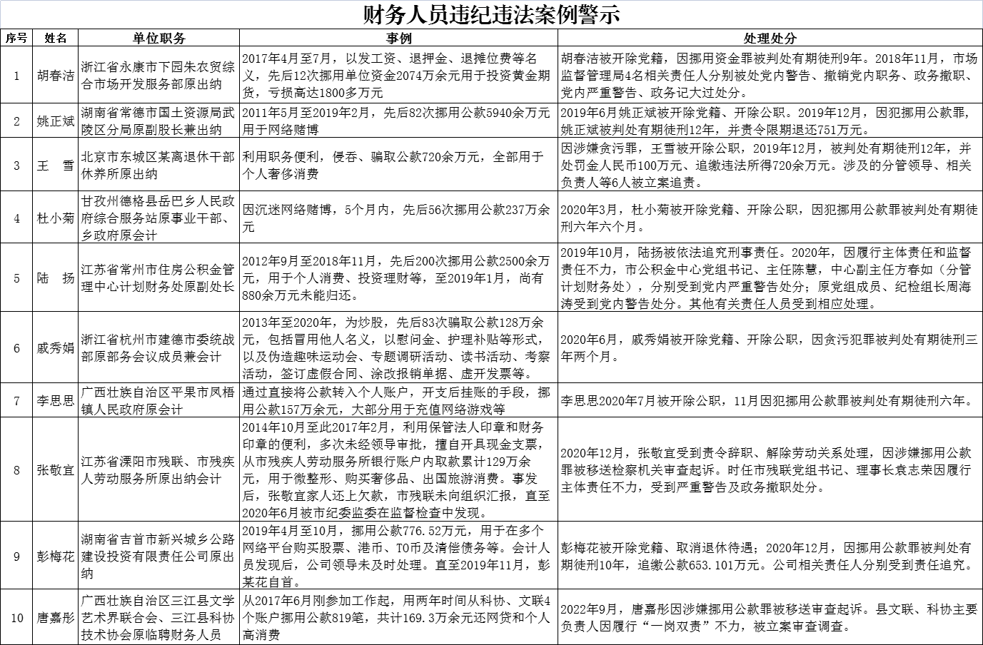 財務人員違紀違法案例警示