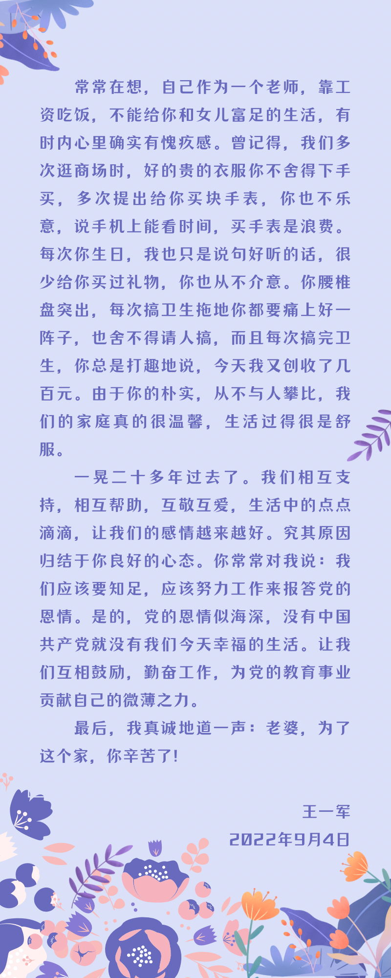 清廉學校——書記、院長評家書(五)|紀委書記王晨旭同志評家書:義無反顧的長長久久