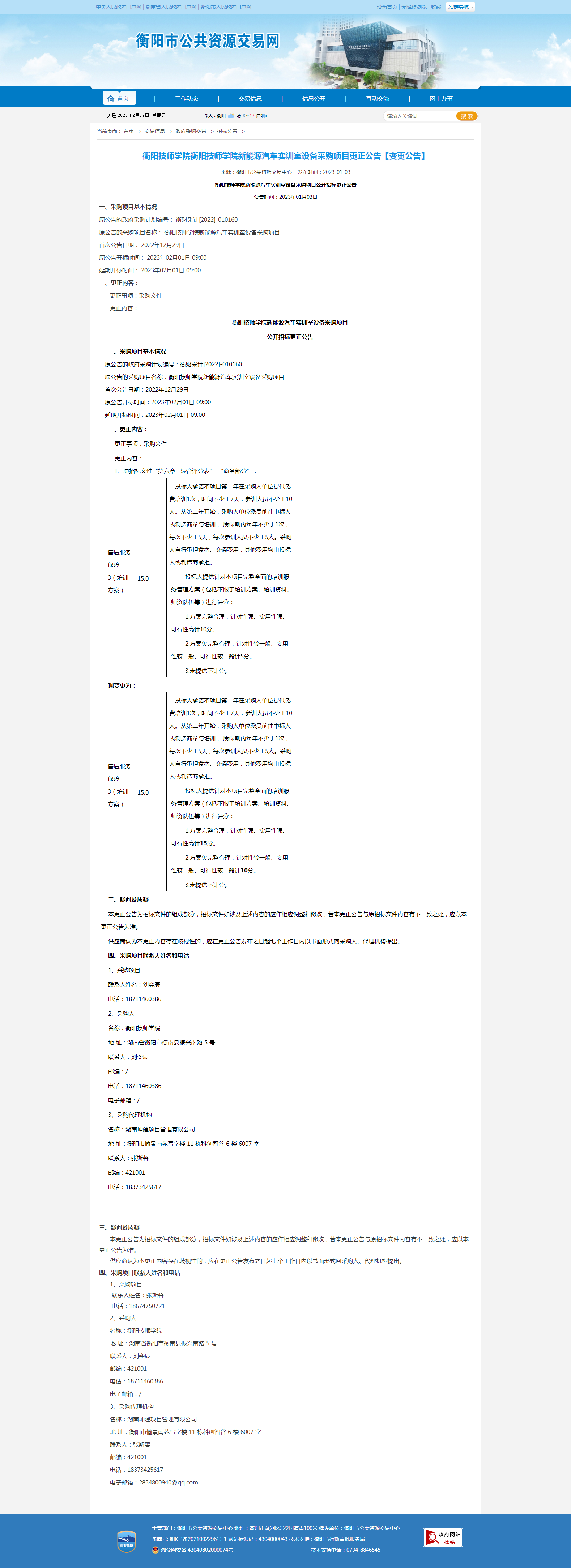 衡陽技師學(xué)院衡陽技師學(xué)院新能源汽車實訓(xùn)室設(shè)備采購項目更正公告【變更公告】