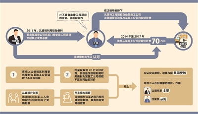 其中,2011年,沈德明利用擔任蘇州監獄黨委書記、監獄長的職務便利,要求蘇州監獄相關工程的承建單位某國資公司將某門窗安裝工程項目交給沈某承接。沈某并不具備承接工程項目的資金、資質和能力,在沈德明安排下,沈某將某門窗安裝工程項目交給某施工公司,沈德明要求沈某與某施工公司約定好處費。2014年至2017年,沈某從某施工公司獲取好處費70萬元,沈德明對此予以認可。