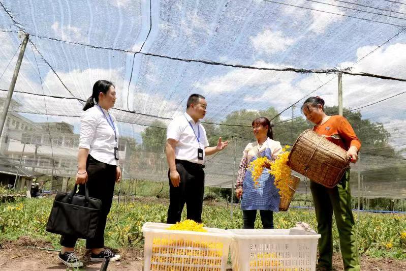 圖為王廷建(左二)在南屏鎮南島河村石斛種植基地向種植戶核查相關問題線索。