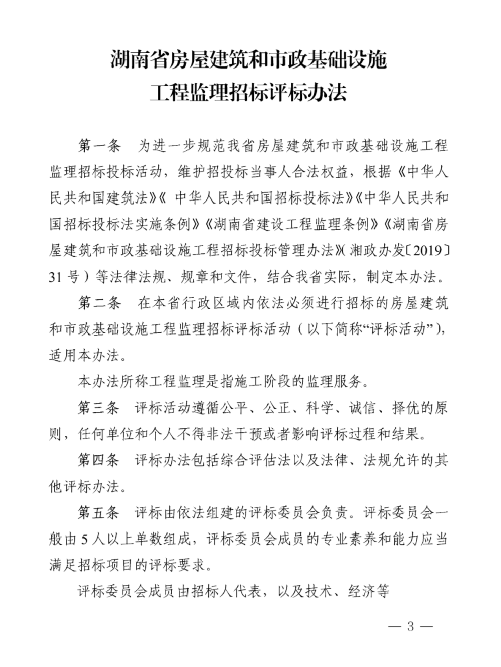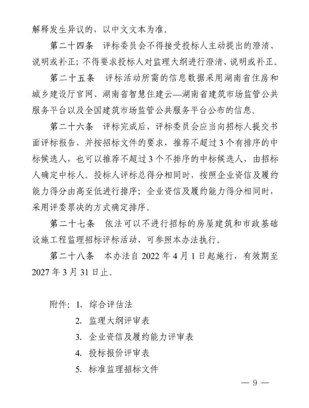 湖南省房屋建筑和市政基礎設施工程監理招標評標辦法