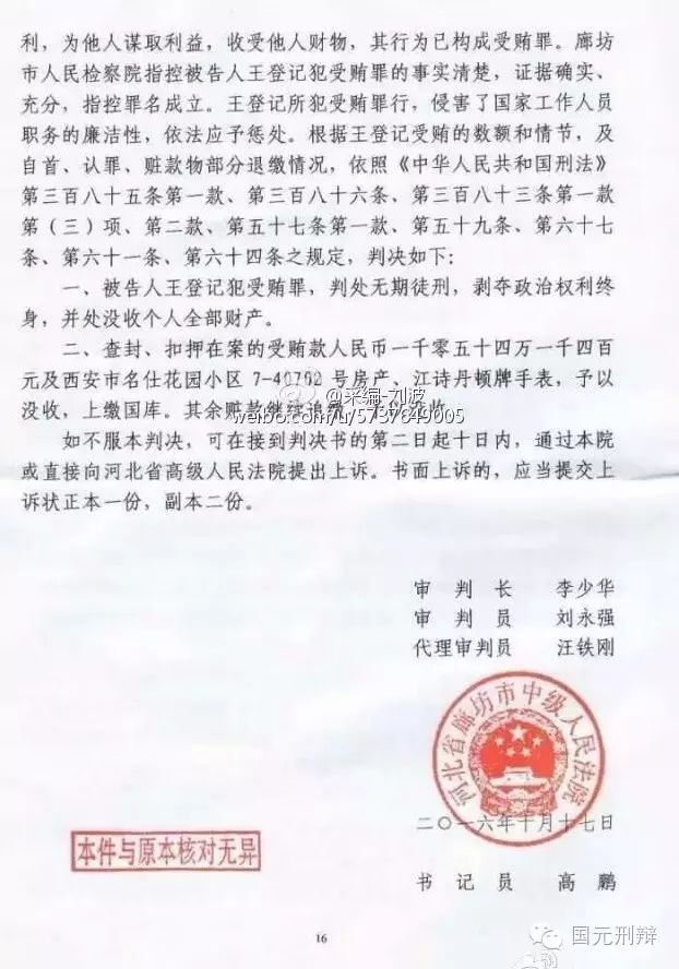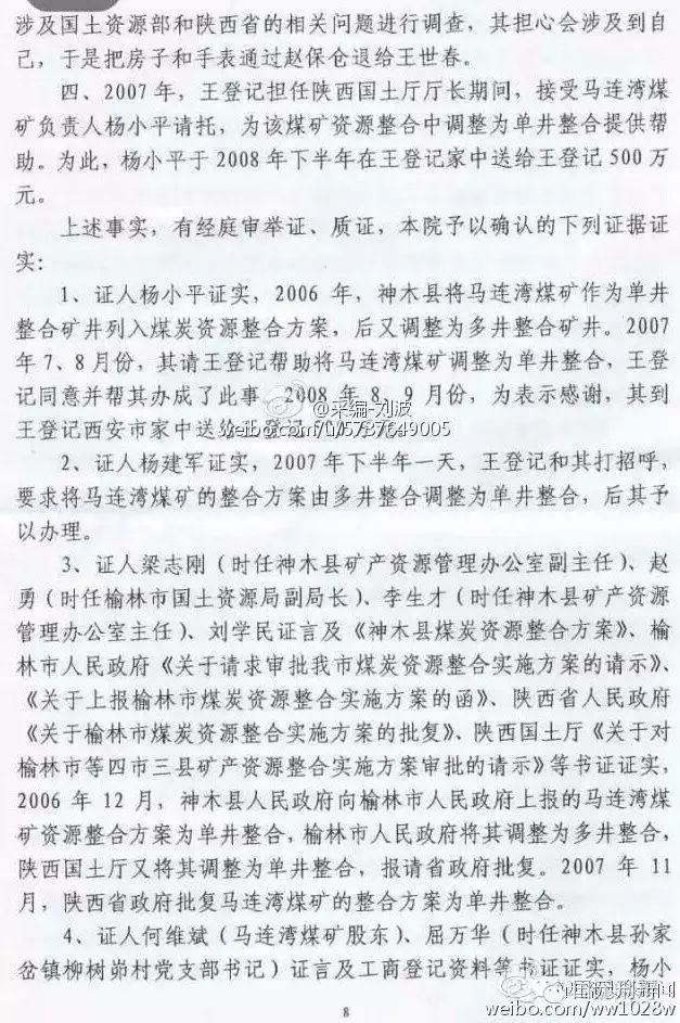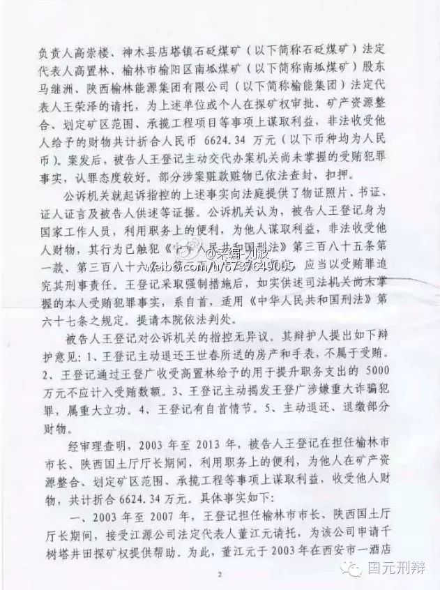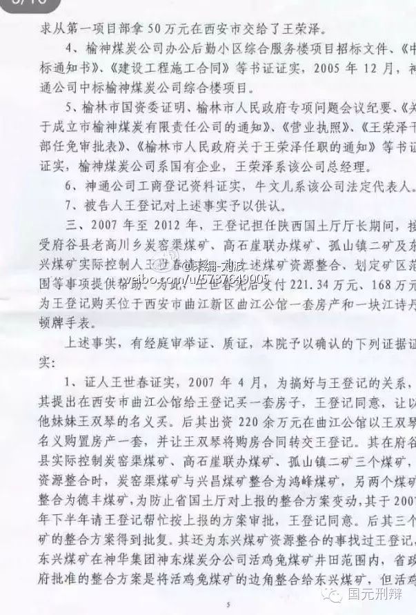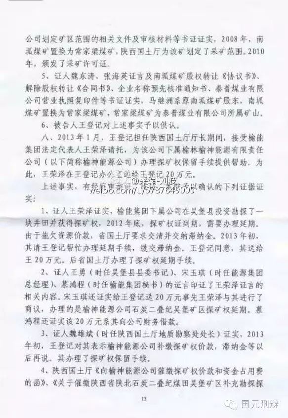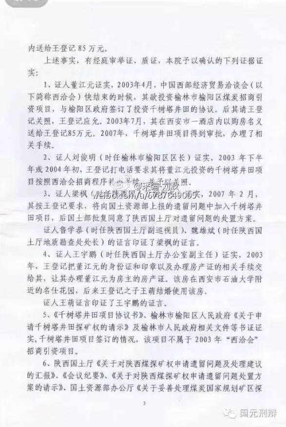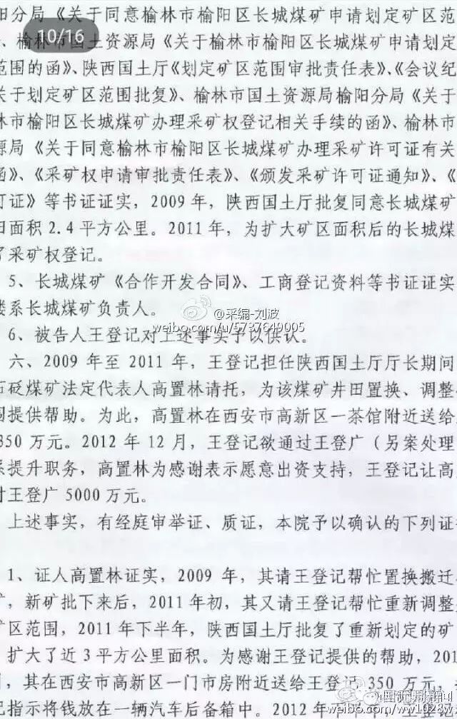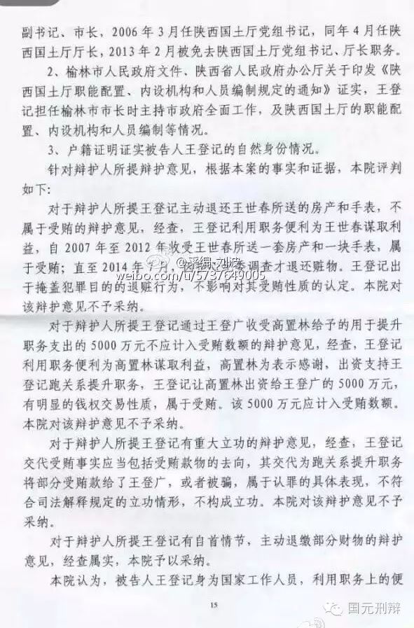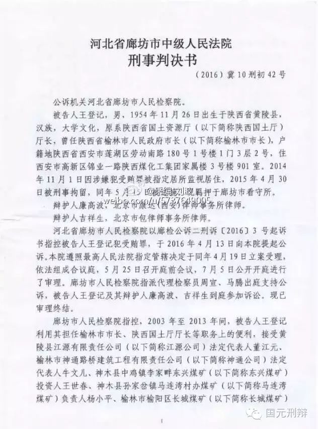 河北廊坊中院一審判決書(不全)揭秘陜西省原國土資源廳廳長王登記受賄6600余萬元,其中5000萬元用于買官