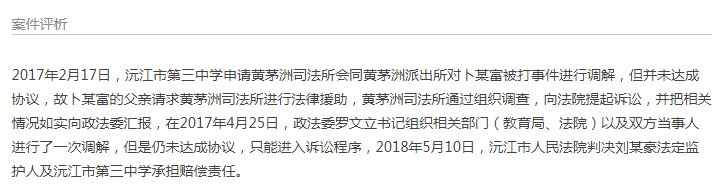 沅江市第三中學卜某富被楊某豪毆打,法院判決監護人及學校承擔賠償責任