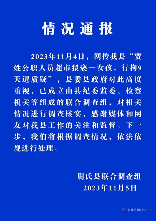 尉氏縣賈姓公職人員超市猥褻女孩,行拘9天遭質疑
