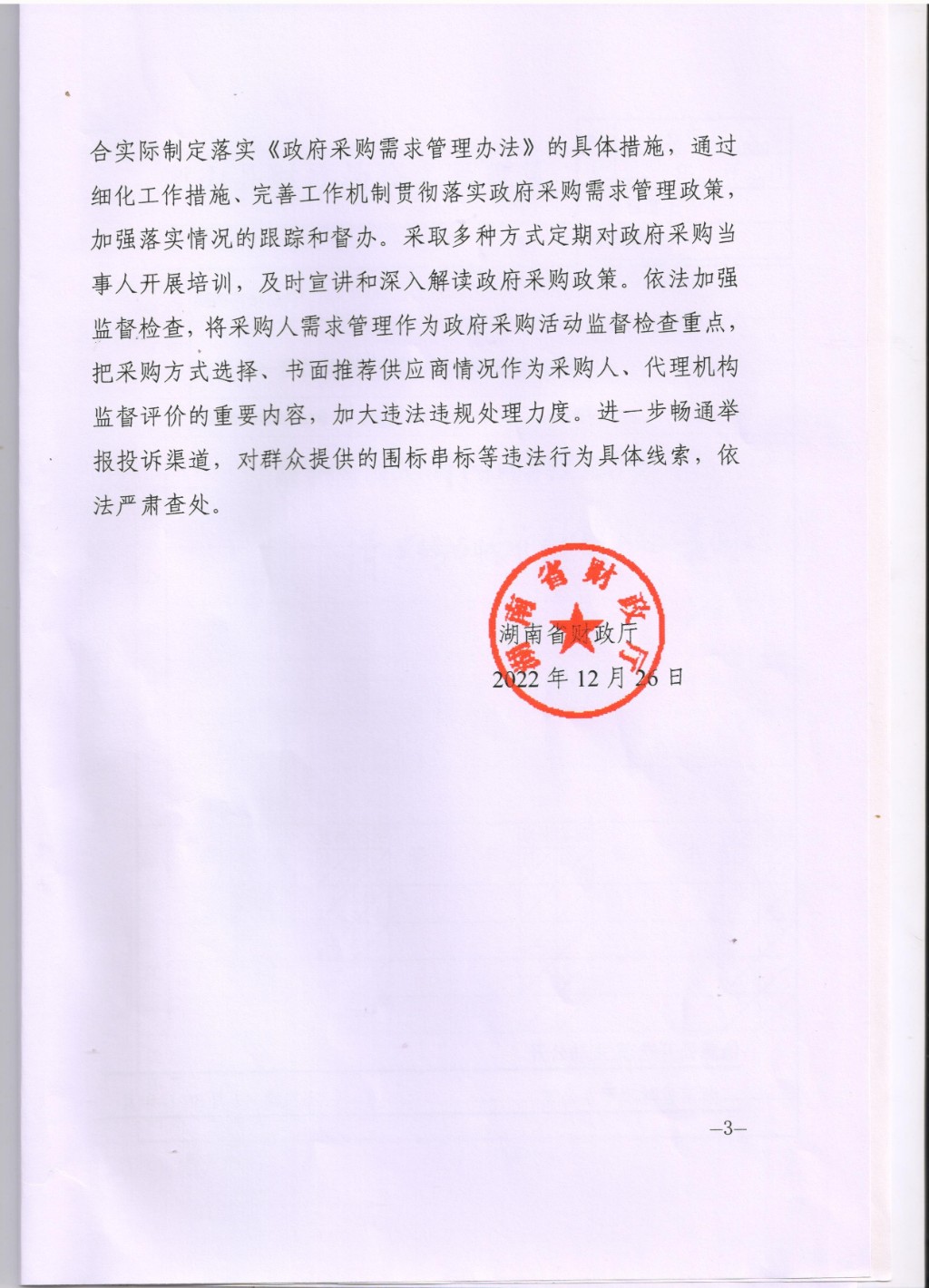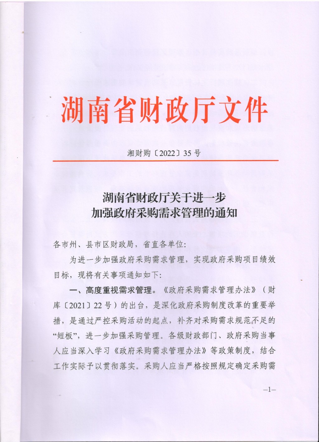 湖南省財政廳關于進一步加強政府采購需求管理的通知