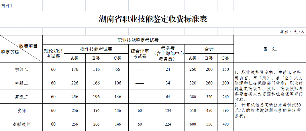 附件:1.湖南省職業技能鑒定收費標準表