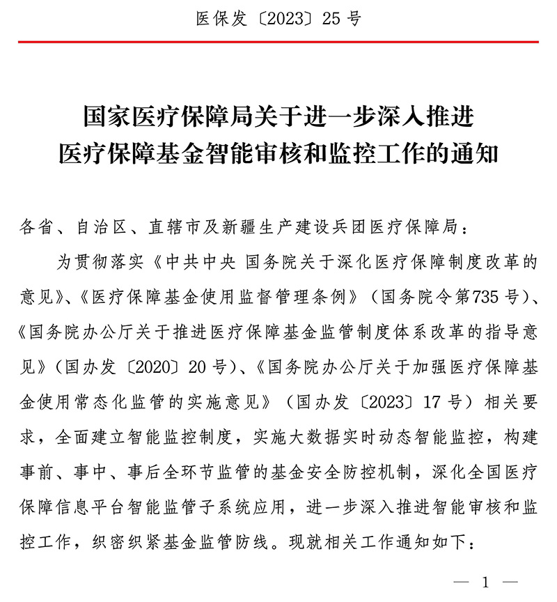 國家醫療保障局關于進一步深入推進醫療保障基金智能審核和監控工作的通知