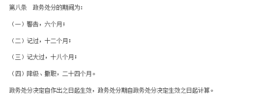 需要注意的是,派駐機構在相應履行政務處分權限及程序過程中,為確保黨紀政務處分貫通銜接,黨紀處分決定通常與政務處分決定同時下達,但處分時間分別依照《中國共產黨處分違紀黨員批準權限和程序規定》第5條(黨紀處分決定自有處分批準權的黨組織集體討論決定之日起生效)、《中華人民共和國公職人員政務處分法》第8條第2款(政務處分決定自作出之日起生效,政務處分期自政務處分決定生效之日起計算)確定。
