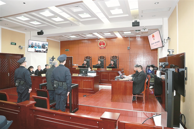 圖為2023年2月1日,謝振山涉嫌受賄罪、利用影響力受賄罪案一審庭審現場。(安陽市中級人民法院供圖)