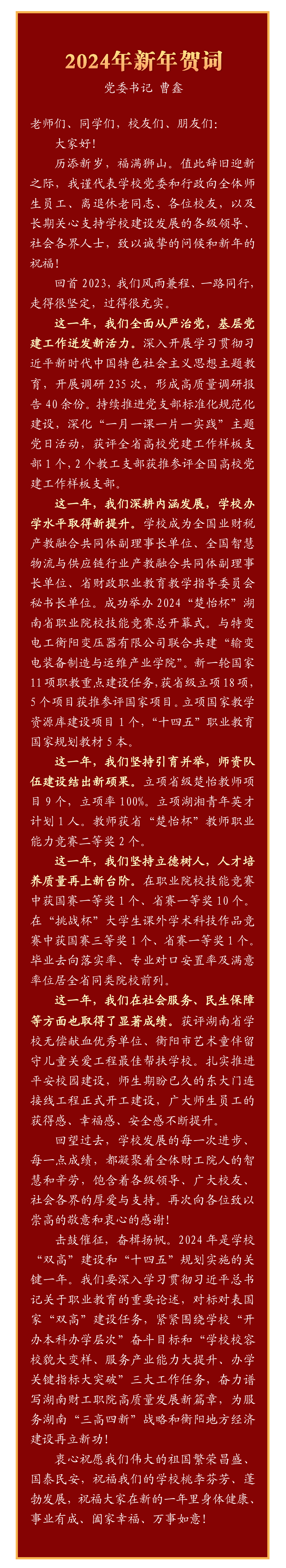 湖南省陶瓷技師學院二〇二四年新年賀詞