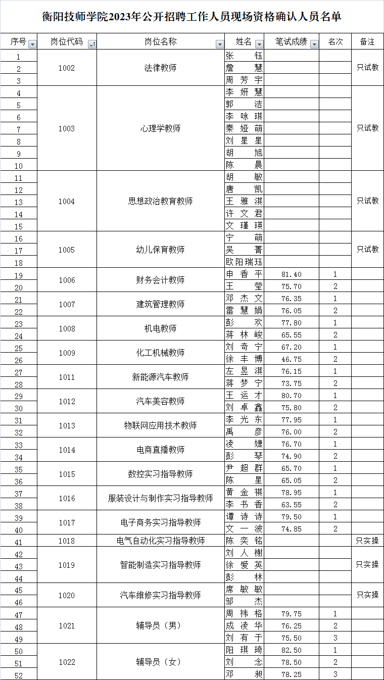 根據《2023年衡陽技師學院公開招聘工作人員公告》和招聘工作進度,現將現場資格確認及面試有關事項公告如下:
