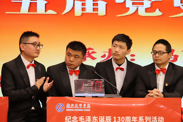 “太陽(yáng)最紅,什么最親...”請(qǐng)搶答!一首首紅色歌曲搶答環(huán)節(jié)把活動(dòng)推向高潮,生動(dòng)活潑的音頻、視頻題,選手爭(zhēng)“分”奪秒搶答,展現(xiàn)了衡技師生的青春風(fēng)采。最終經(jīng)過(guò)激烈的角逐,電氣工程學(xué)院代表隊(duì)獲得一等獎(jiǎng),智能制造學(xué)院、鄉(xiāng)村振興學(xué)院代表隊(duì)獲得二等獎(jiǎng),交通工程學(xué)院、信息工程學(xué)院、現(xiàn)代物流學(xué)院代表隊(duì)獲得三等獎(jiǎng)。