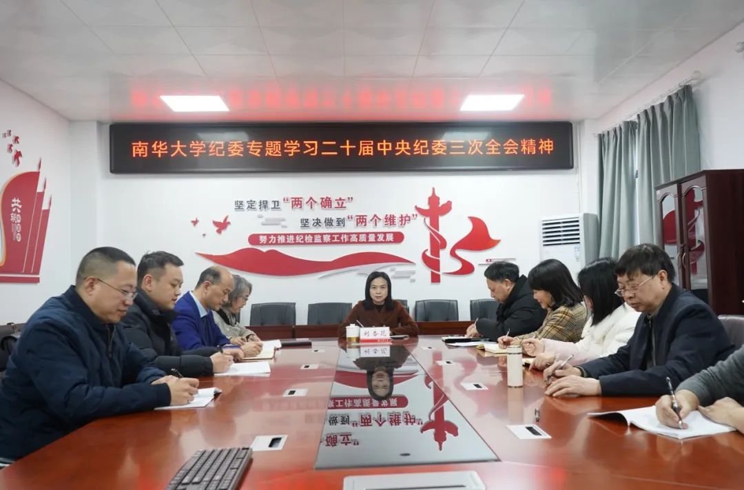 1月11日下午,校黨委委員、紀委書記劉杏花在第一辦公樓121會議室主持召開專題學習會,傳達學習習近平總書記在二十屆中央紀委三次全會上的重要講話和二十屆中央紀委三次全會精神。
